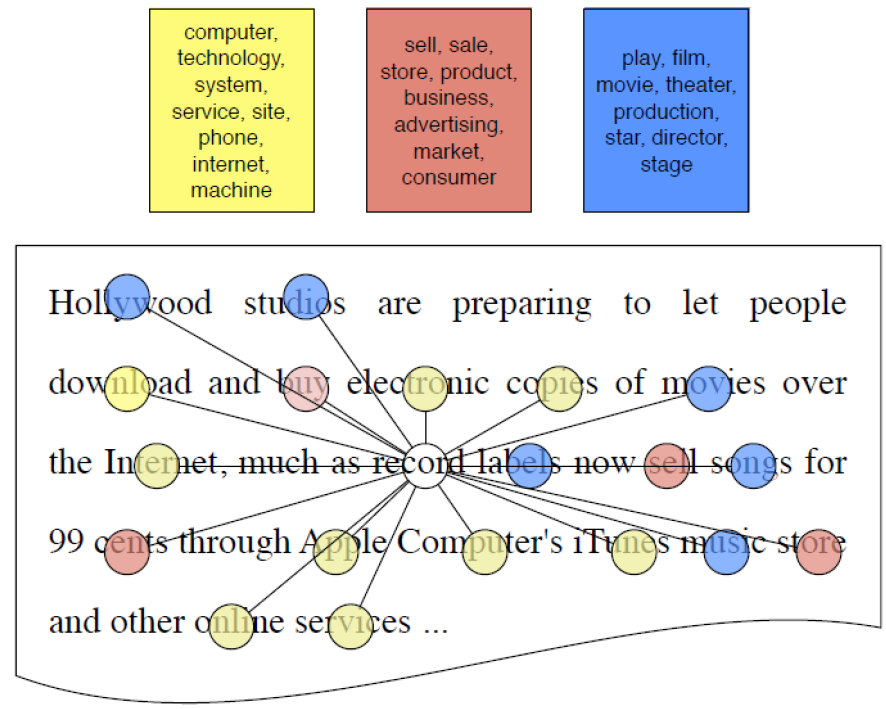 각 문서는 주요 통계적 관계를 보존하면서, 말뭉치(Corpus)의 효율적인 연산을 위해 구성 요소들에 대한 최적의 주제를 찾습니다(Blei, Ng, & Jordan, 2003).