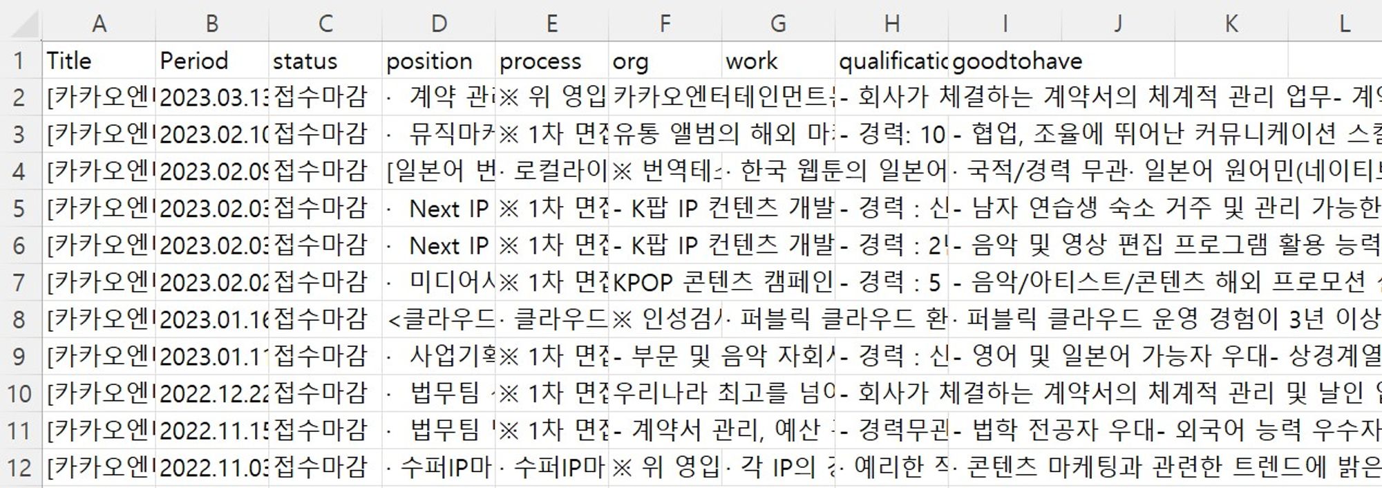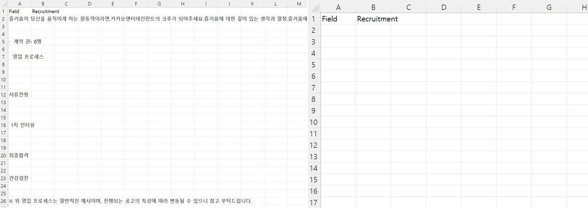 • 해당 데이터는, 영입 파트에 있어서 상당히 의미 있는 비정형 데이터로 판단
