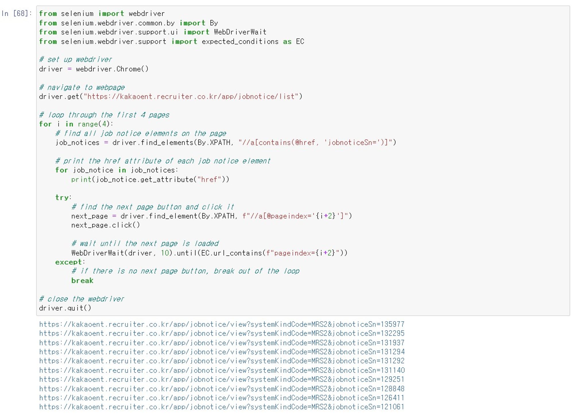 driver.get("<https://kakaoent.recruiter.co.kr/app/jobnotice/list>")