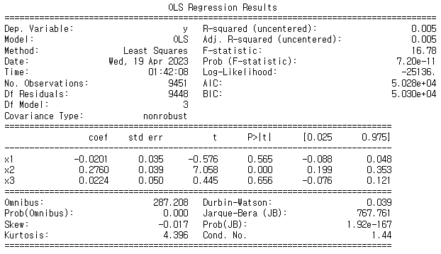 : OLS 회귀 모형 성능 결과(statsmodels.api의 summary 기능 활용)