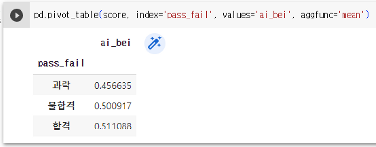 그렇다면, 과연 AI영상면접이 합격자와 과락자 사이에 구분을 잘 하고 있는지 확인하기 위해 t-test를 실시해봤다.