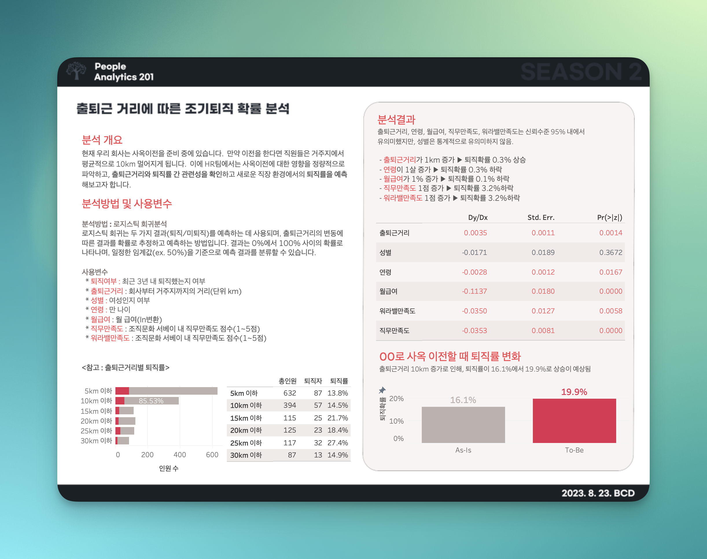 [데이터분석 실습] 출퇴근거리에 따른 조기퇴직 확률 분석 본문