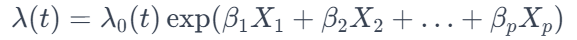 - λ0(t): 기준 위험률, 즉 모든 설명 변수가 0일 때의 위험률