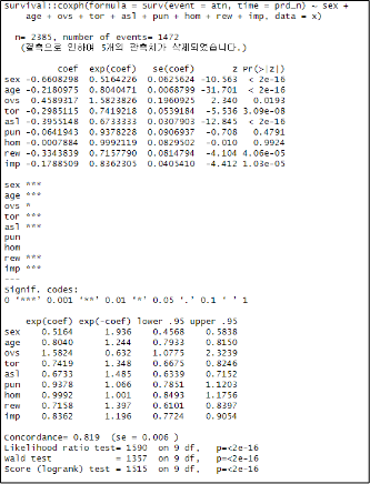 Cox 회귀모형 결과해석
