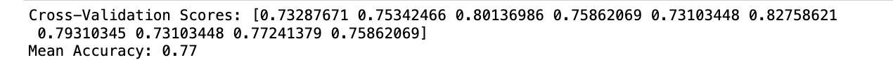 print(f'Mean Accuracy: {np.mean(cv_scores):.2f}')