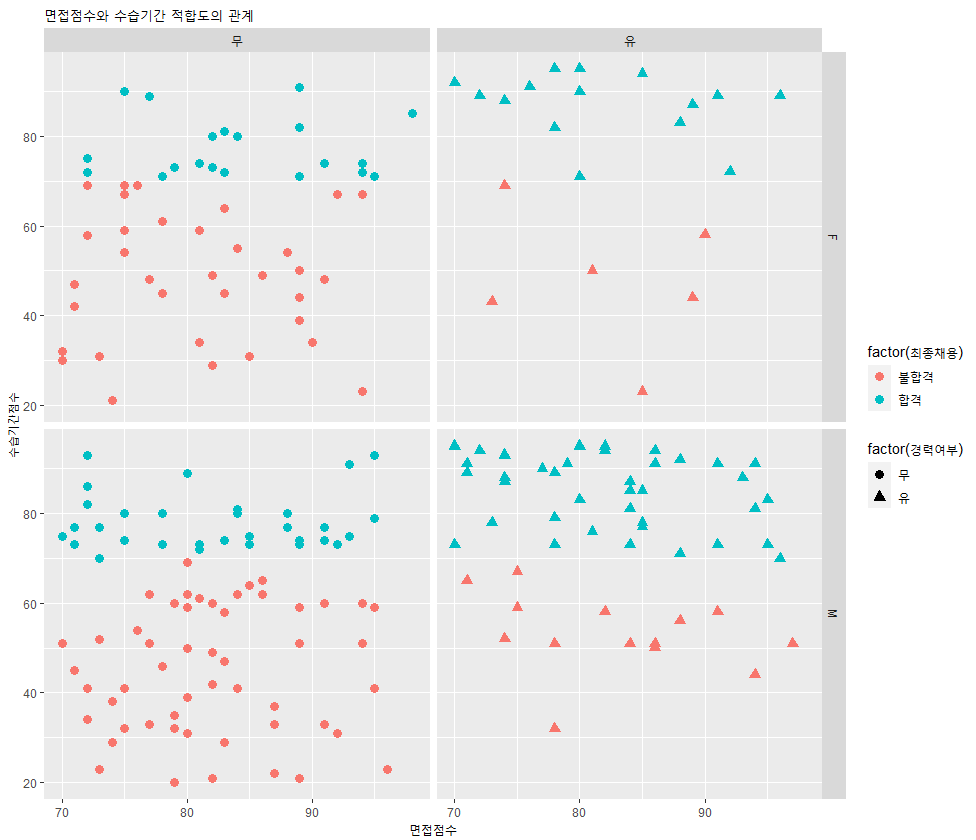 - 분석 데이터 : 성별, 서류점수, 경력여부, 실무면접점수, 수습평가 점수, 합격여부